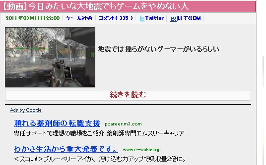 記事紹介:はちま&JIN地震をバカにするような記事を書く