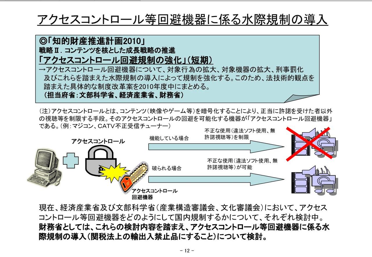 アクセスコントロール機器としてマジコン、CATV不正視聴チューナー等が販売規制される見通し